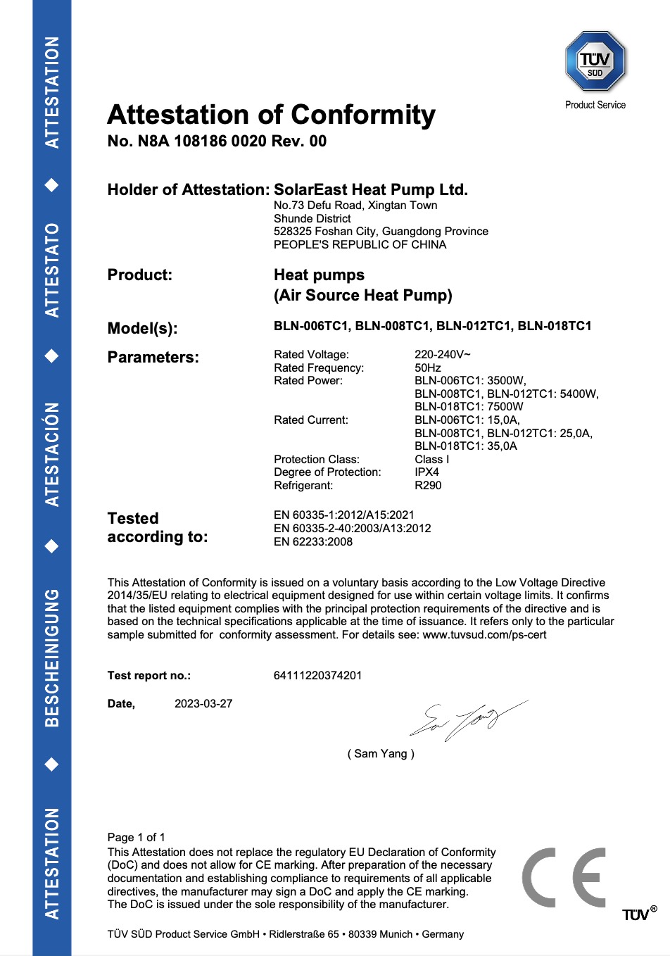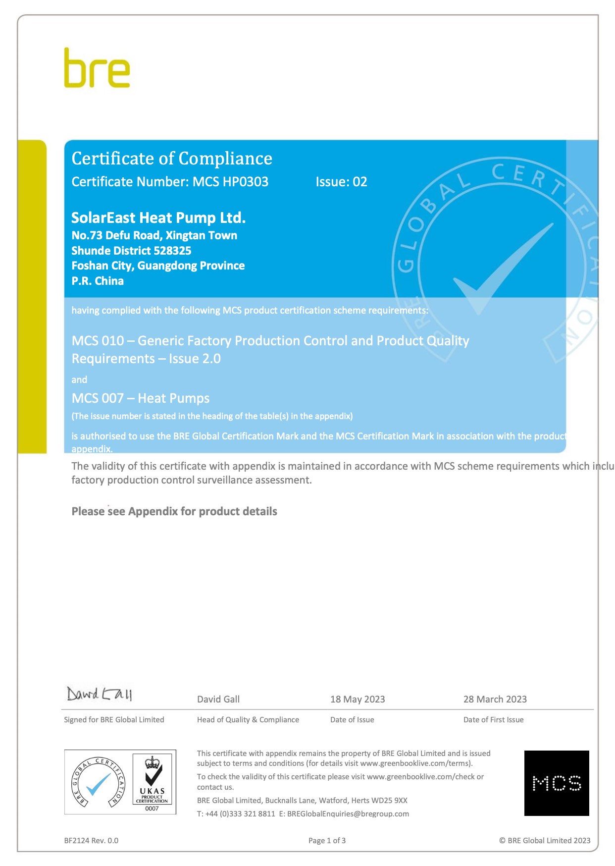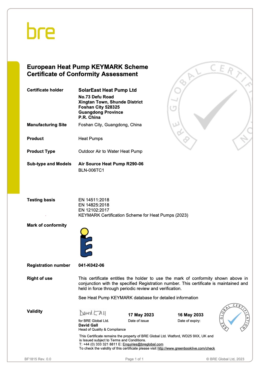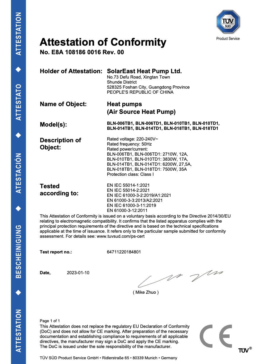 including CE, CB, RoHS, Keymark, Watermark, UKCA, MCS, SG Ready, CCC, ISO 9001, and ISO 14001 ,and so on.